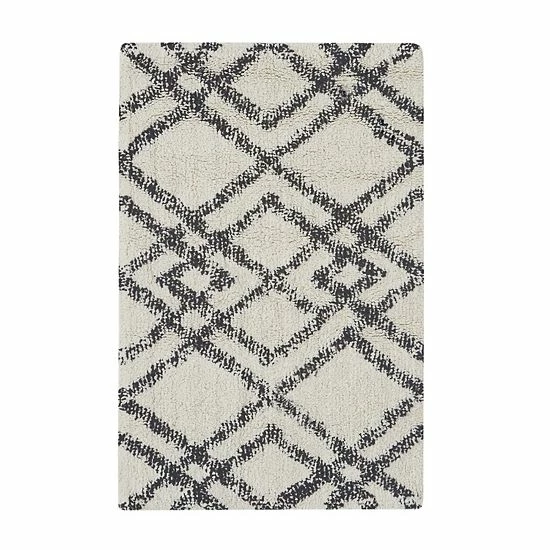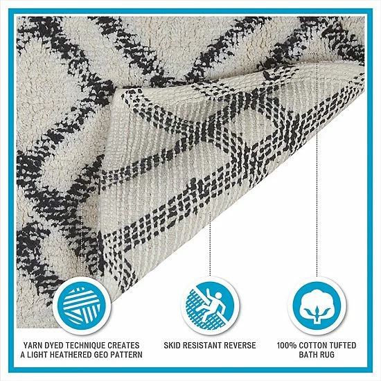 Perfect the look and feel of your bathroom ambiance with this stylish INK+IVY Ansel Geo Diamond Yarn Dyed Cotton Tufted Bath Rug.