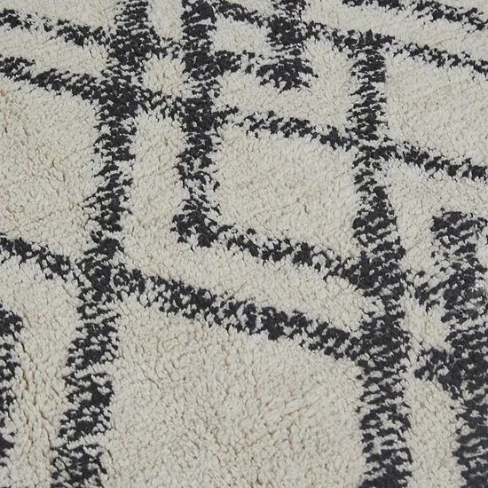 - Cotton tufted bath rug with yarn dyed geo diamond pattern.