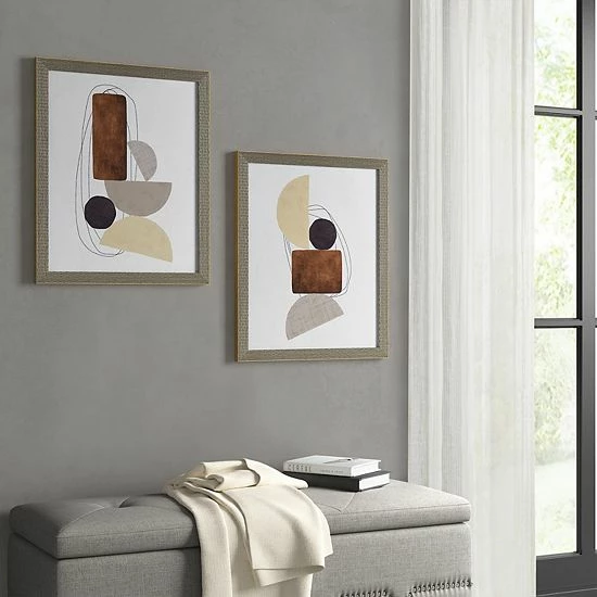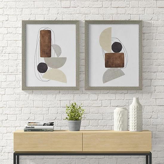 Complement your existing Decor with this stylish INK+IVY Cashel Abstract Two Tone Neutral Framed Graphic Wall Art 2-Piece Set.