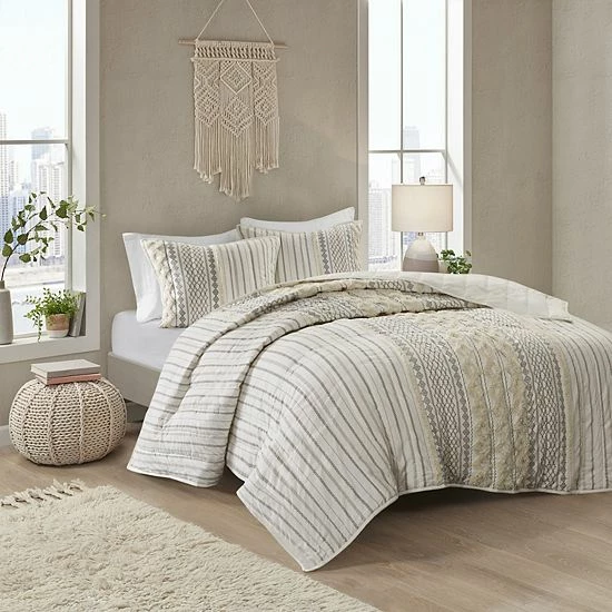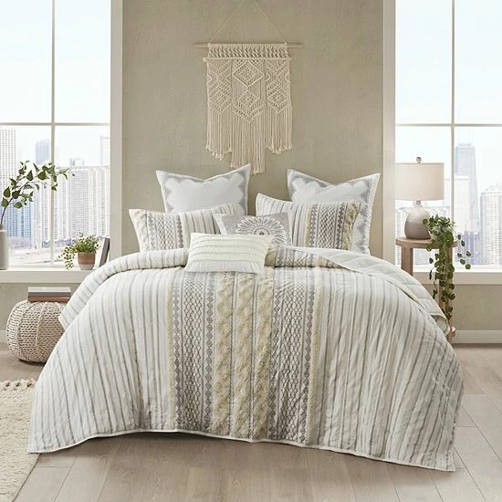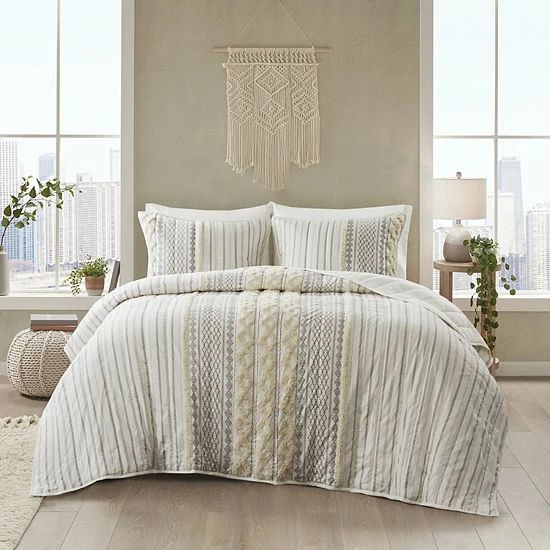 Create a picture perfect look and feel with this stylish INK+IVY Imani Cotton Printed Coverlet Set with Shams.