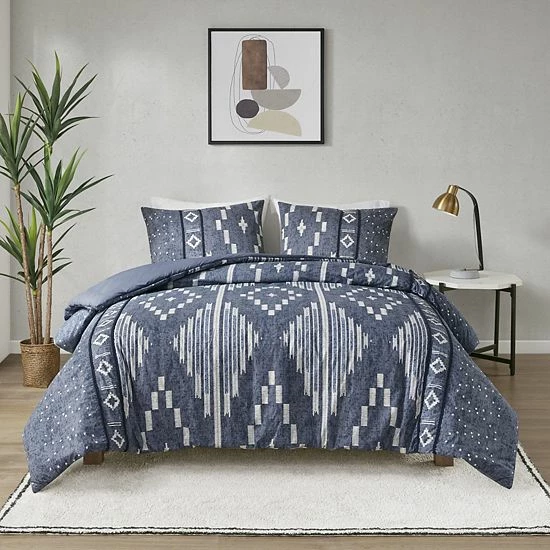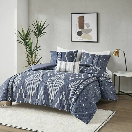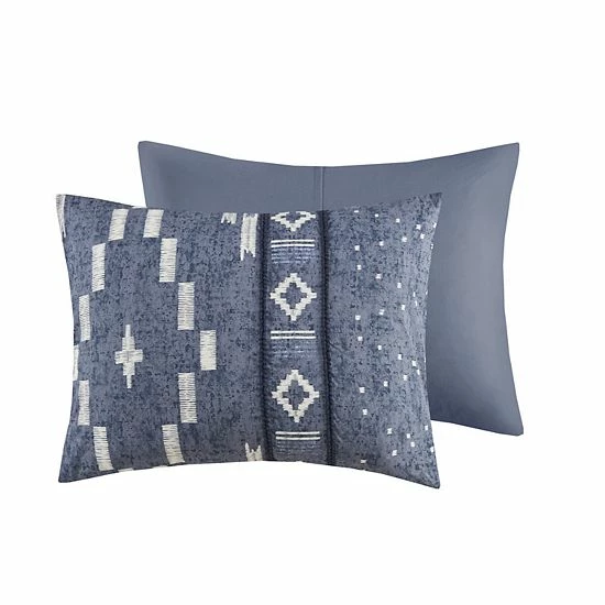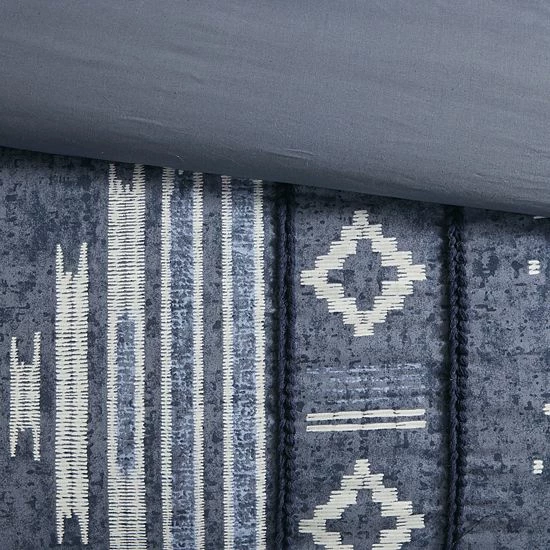 Revive your bedroom with the sophisticated style of the INK+IVY Inari Ikat Print and Braided Trim Duvet Cover Set with Shams.
