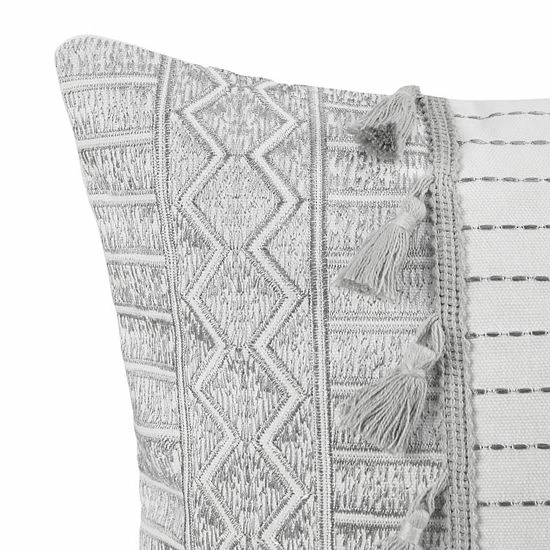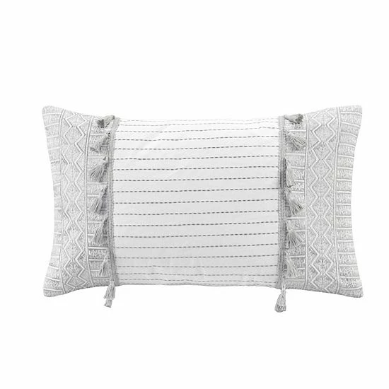 Create a memorable look with this INK+IVY Selma Embroidered Tassel oblong throw pillow.